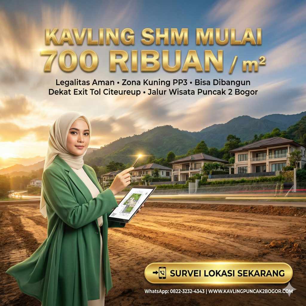 Ya, tanah di Puncak 2 Bogor aman untuk investasi terutama jika memilih kavling dengan legalitas jelas seperti Kavling Harmoni Prime East Bogor. Faktor keamanan investasi meliputi: